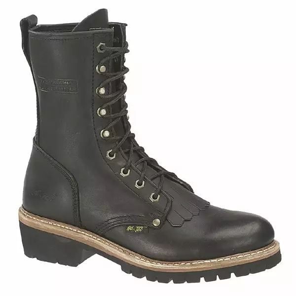 AdTec Mens Black 10in Fireman Logger Kiltie Leather Work Boots