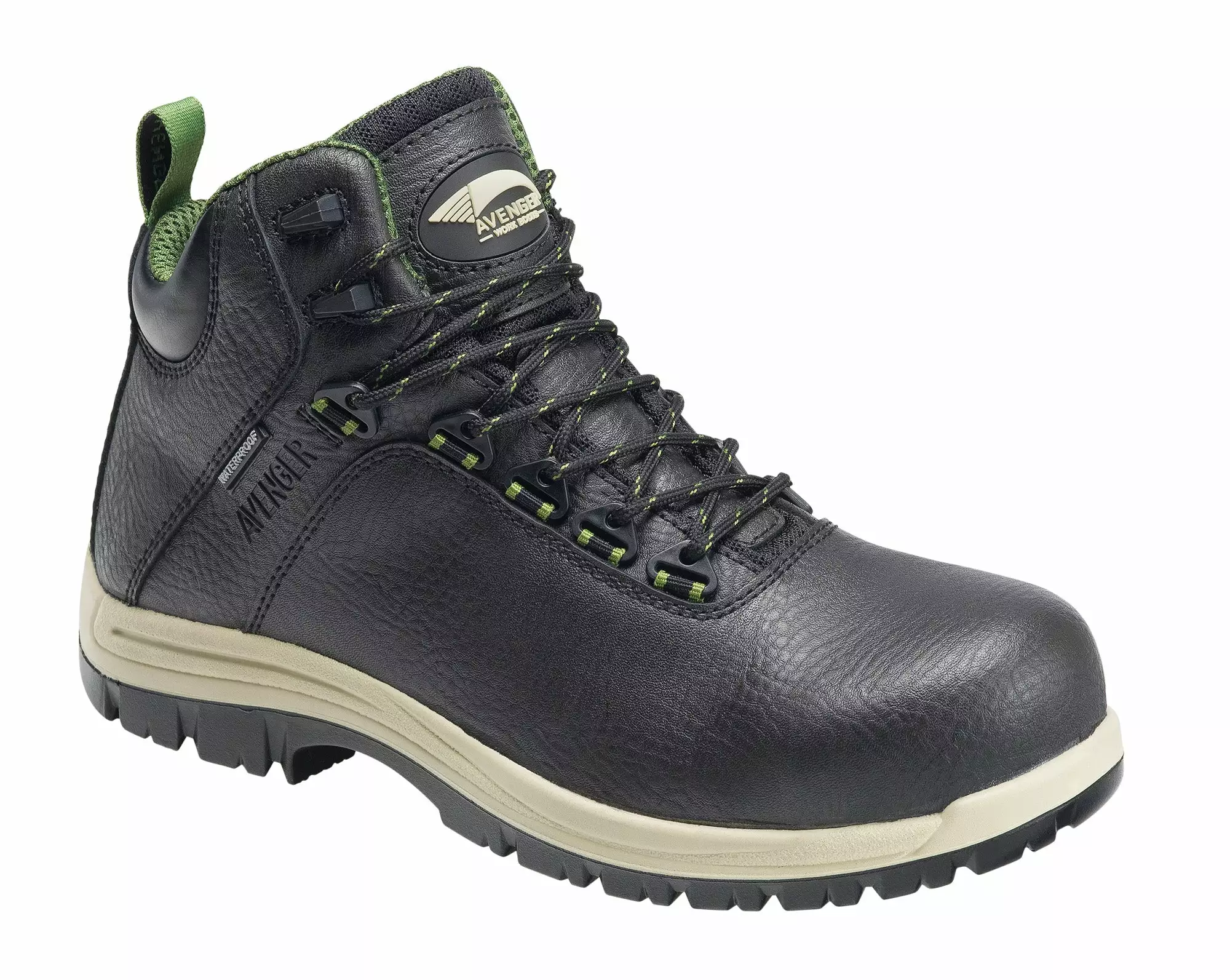 Avenger Mens Black Leather Comp Toe 7282 Breaker 6in Work Boots