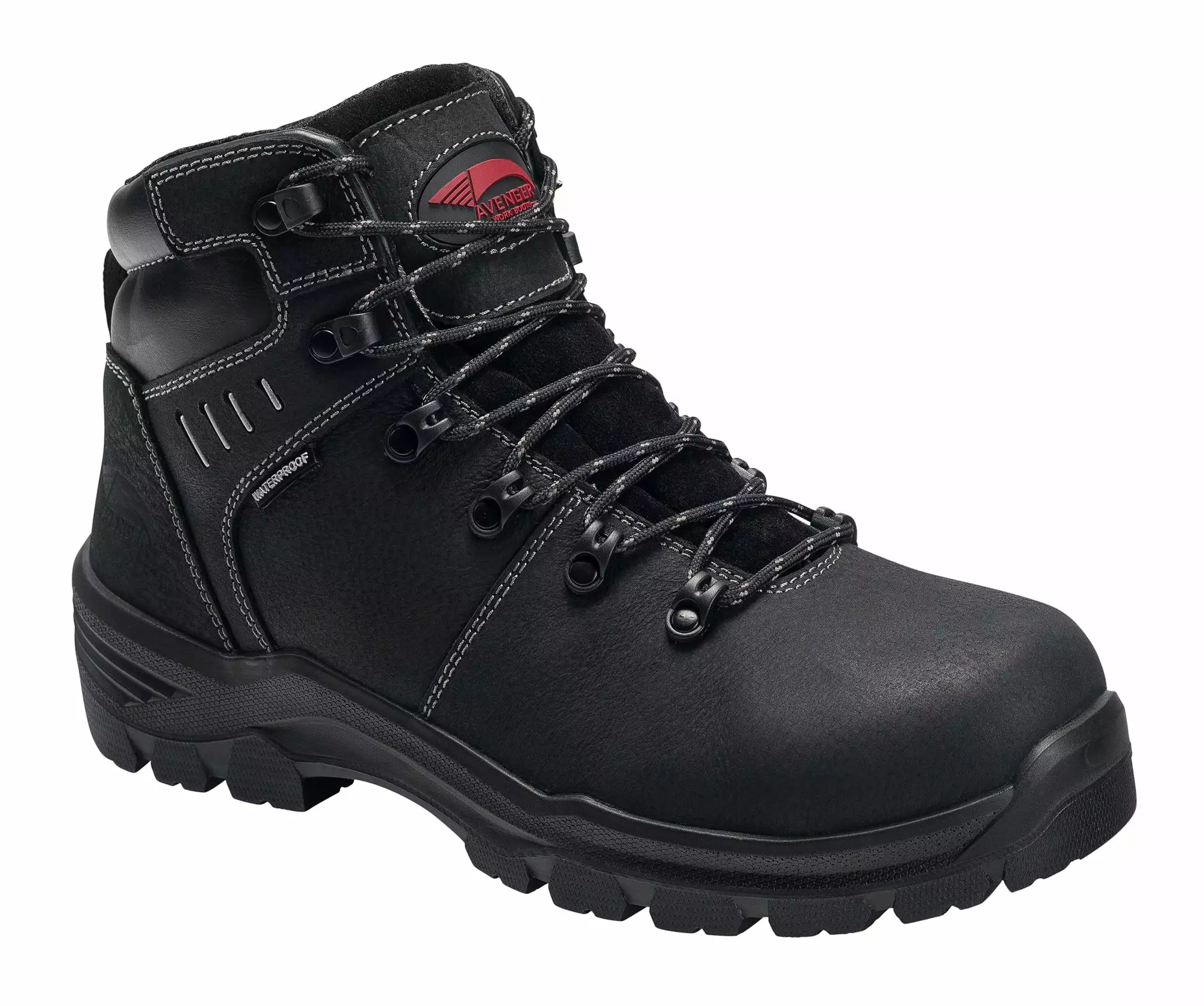 Avenger Mens Black Leather Comp Toe 7400 Foundation 6in Work Boots