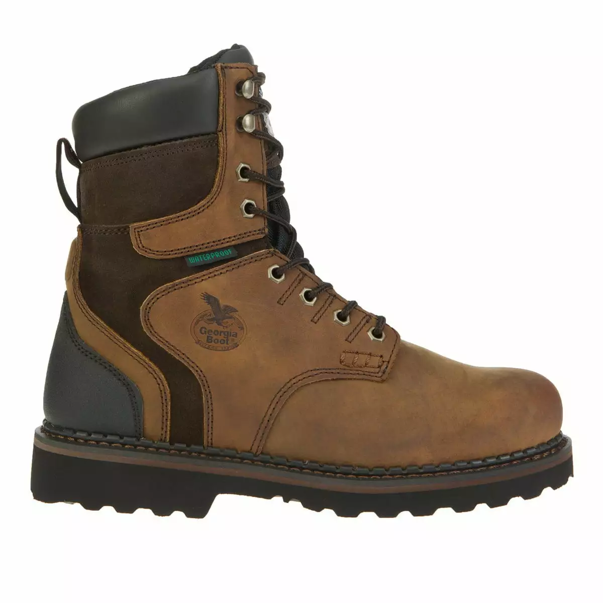 Georgia Brookville Mens Dark Brown Leather Waterproof 8in Work Boots