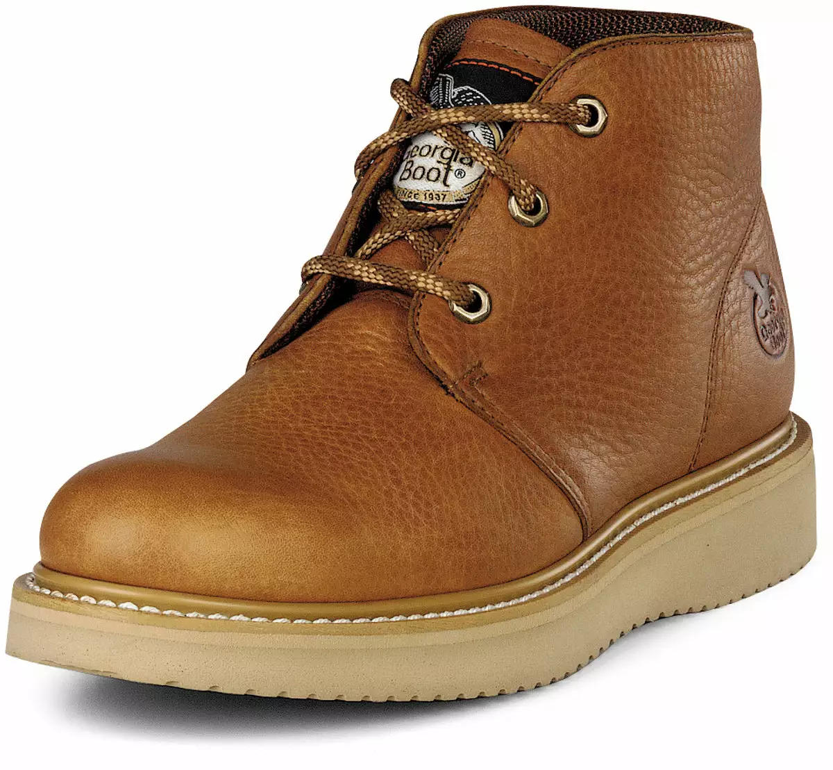 Georgia Mens Barracuda Gold Leather SPR Wedge Chukka Work Boots