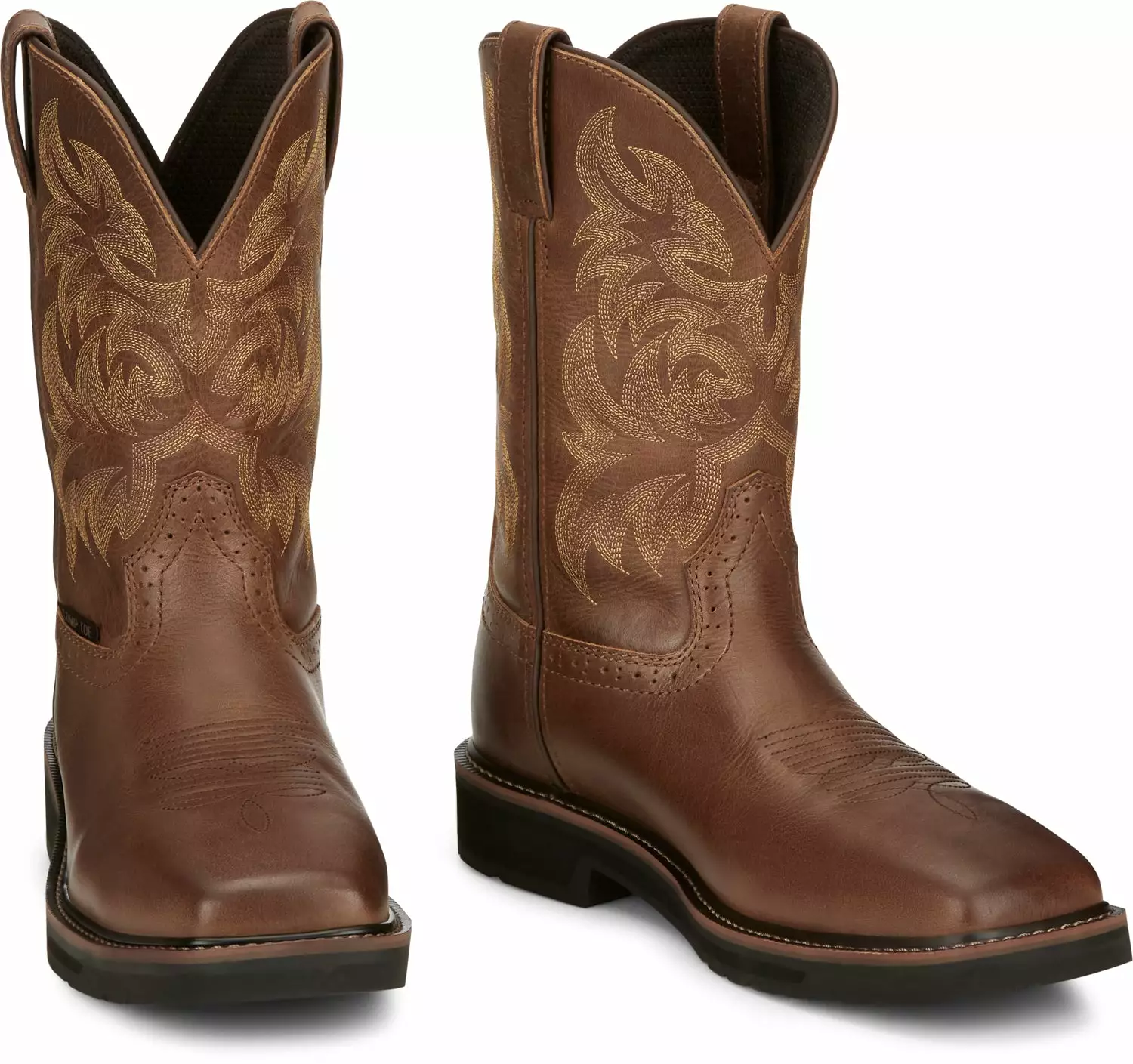 Justin Boots believe in continuing tradition and that is reflected in the durable, comfortable, authentic western and work boots they create. These men work boots feature a composite toe, rubber outsole, and a tan tail top. Get ready to work in comfort with these boots!