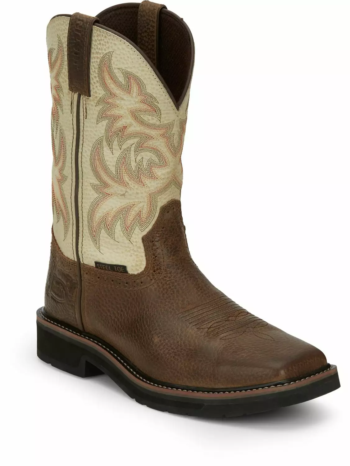 Justin Boots believe in continuing tradition and that is reflected in the durable, comfortable, authentic western and work boots they create. These men work boots feature a steel toe, rubber outsole, and a rugged leather exterior. Get ready to work in comfort with these boots!