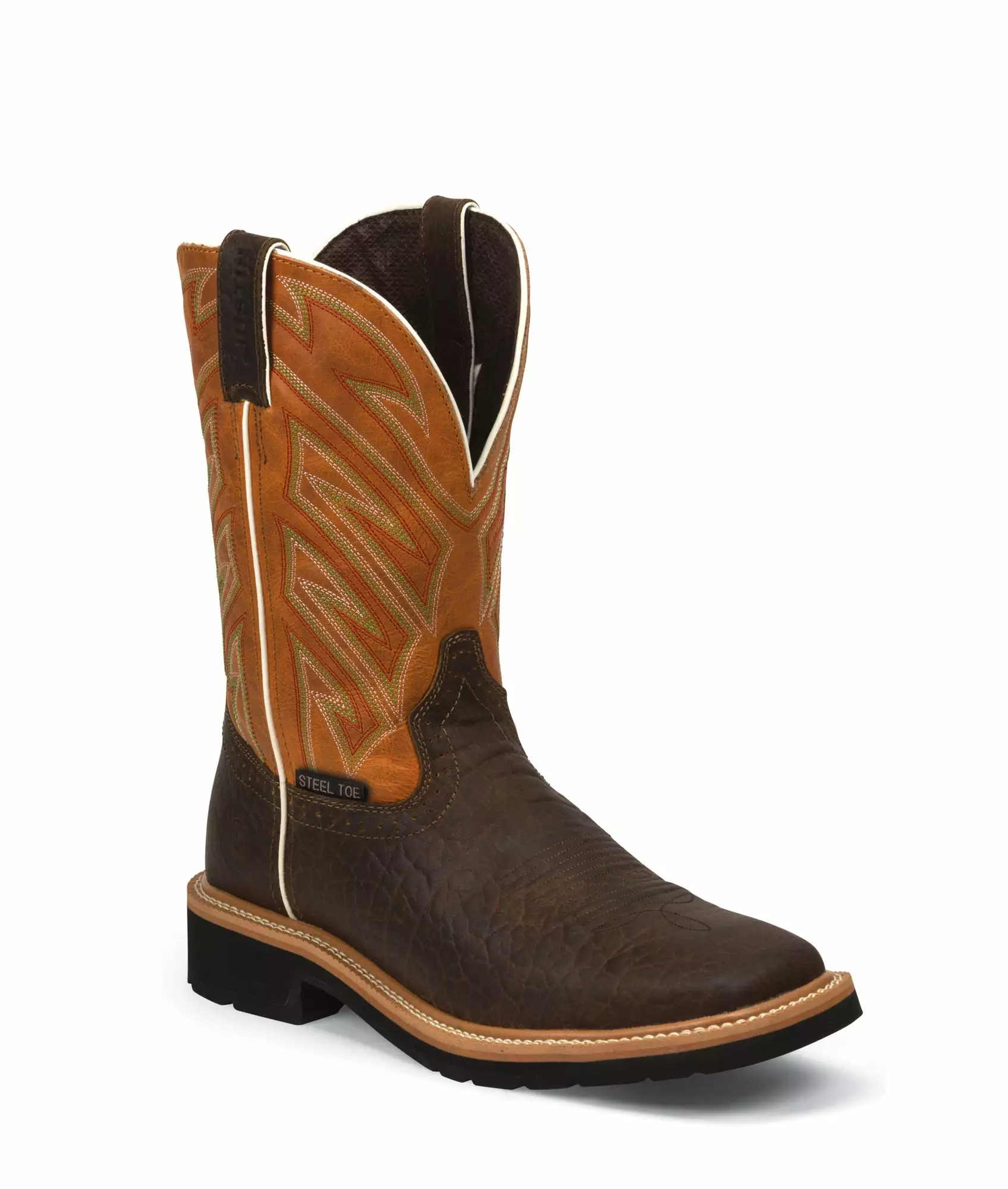 Justin Mens Chestnut Leather Work Boots Steel Toe 11in