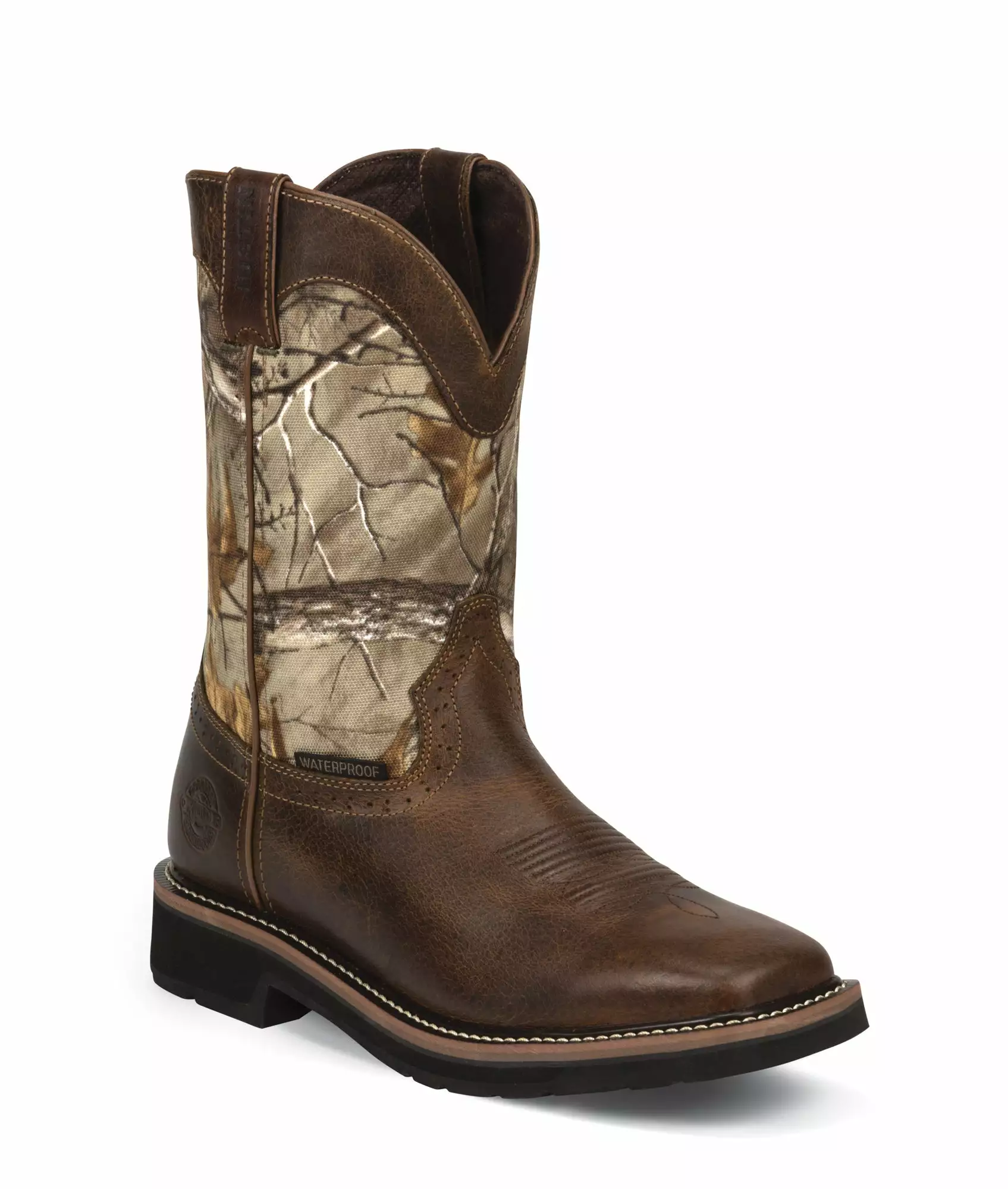 Justin Mens Tan Rugged Leather Work Boots 11in Stampede WP Camo