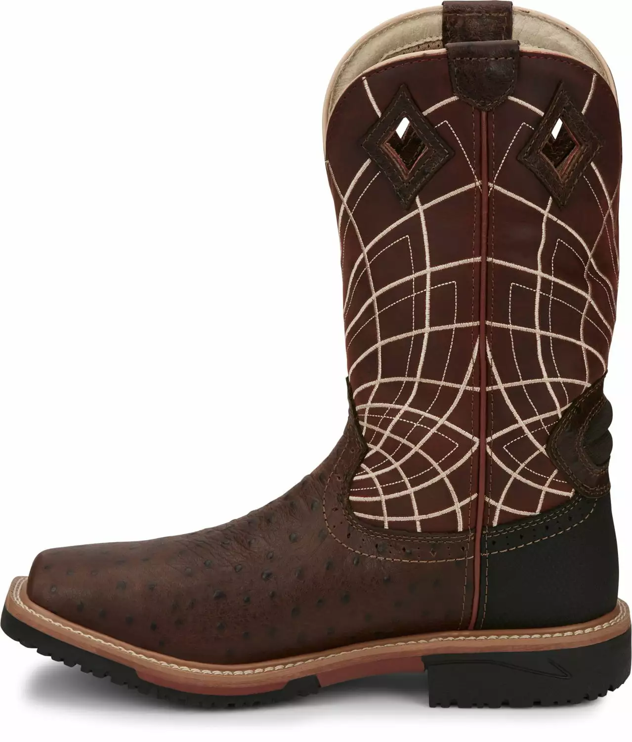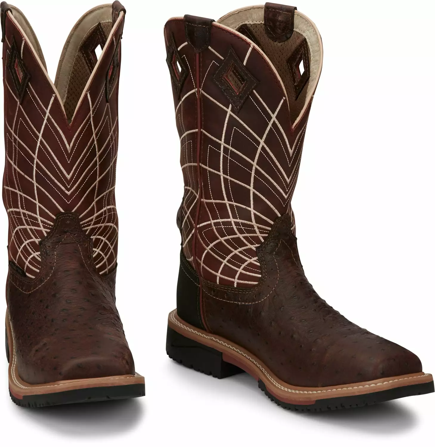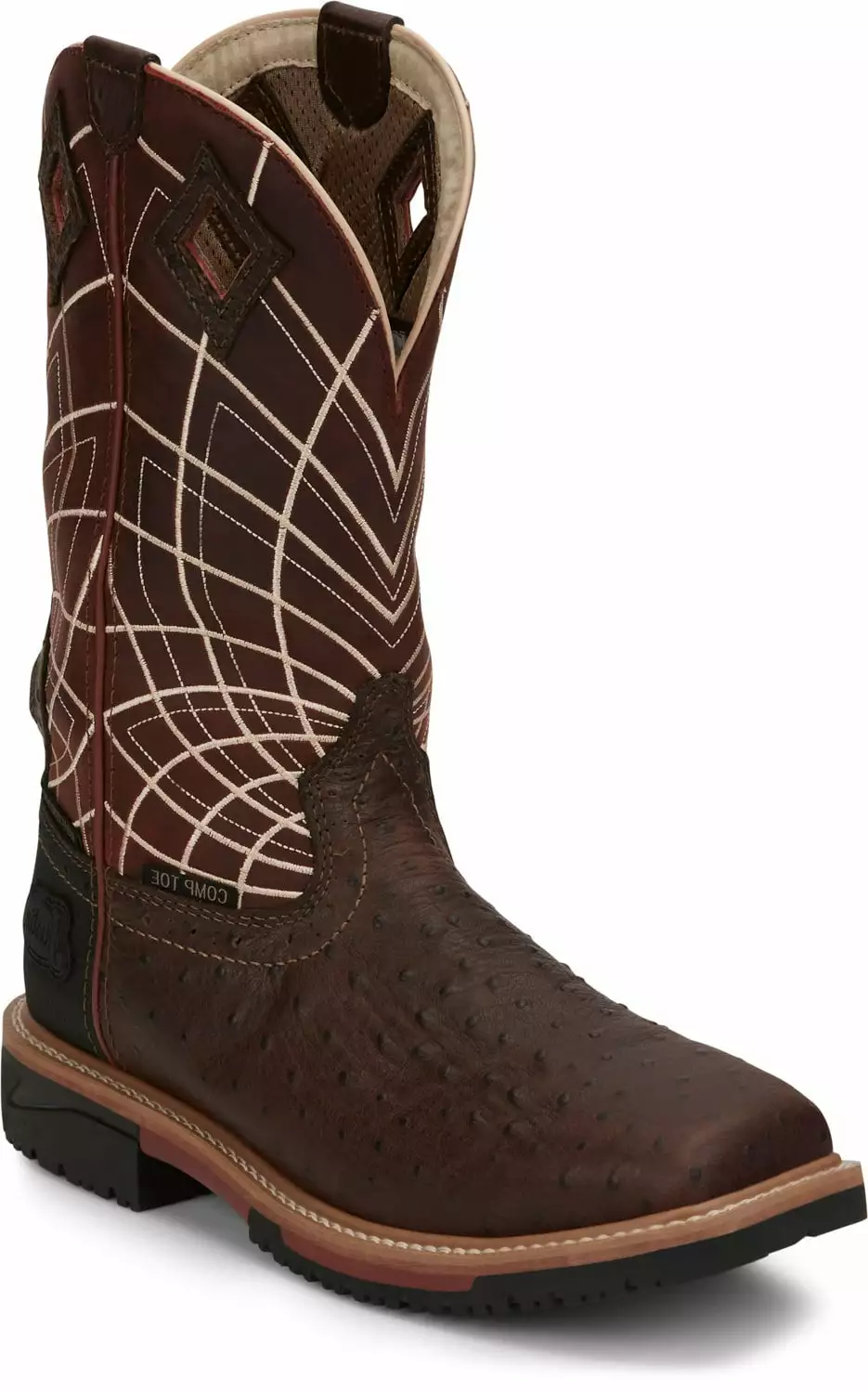 Justin Ostrich Print CT Mens Rust Derrickman Leather Work Boots