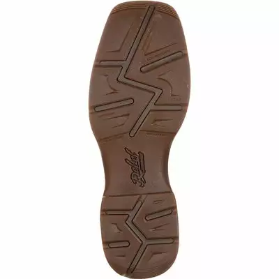 This men’s 11” square-toe Western boot is part of the Rebel by Durango collection, so you can be certain that it will be lightweight, comfortable to wear and outstandingly durable. Its upper has been constructed out of full-grain leather; the slight distressing, handsome stitching and combination of burnt yellow and brown hues creates a very nice looking men’s boot. Having finger holes, pull straps and a slightly dipped topline allow you to pull these Western boots on with absolute ease.