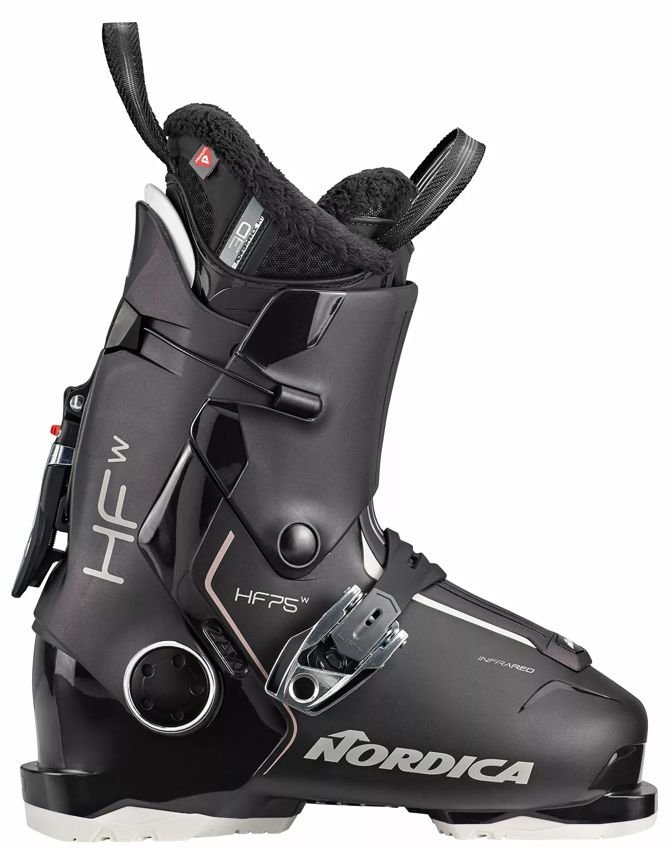 The 2023 Nordica HF 75 Women’s Ski Boot ensures nothing gets in the way of your love for skiing. Designed specifically for those who want to skip the hassle of buckling their boots, it stands to simplify your skiing experience. The HF 75 W provides a unique blend of comfort, performance, and convenience. Nordica’s revolutionary Back Buckle Closure System uses a hands-free design that makes getting in and out of your boots as easy and intuitive as sliding into your favorite slippers. For additional comfort and even greater control, the HF 75 W sports a high performance liner. And for a fit that’s truly personal, the liner and shell can readily be customized. Season after season, keep on skiing with Nordica’s HF 75 W.