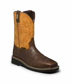 Justin Mens Brown Waxy Leather Work Boots 11in Stampede Pull-On