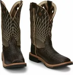 Justin Croc Print CT Mens Chocolate Derrickman Leather Work Boots