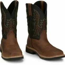 Justin 11in Water Buffalo Mens Pecan/Black Bolt Leather Work Boots