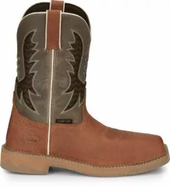 Justin Mens Orange Rustic Leather Work Boots 11in Hybred Pull-On