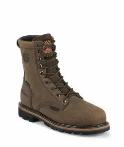 Justin Mens Wyoming Leather Work Boots Comp Toe Lace-Up WP Worker II