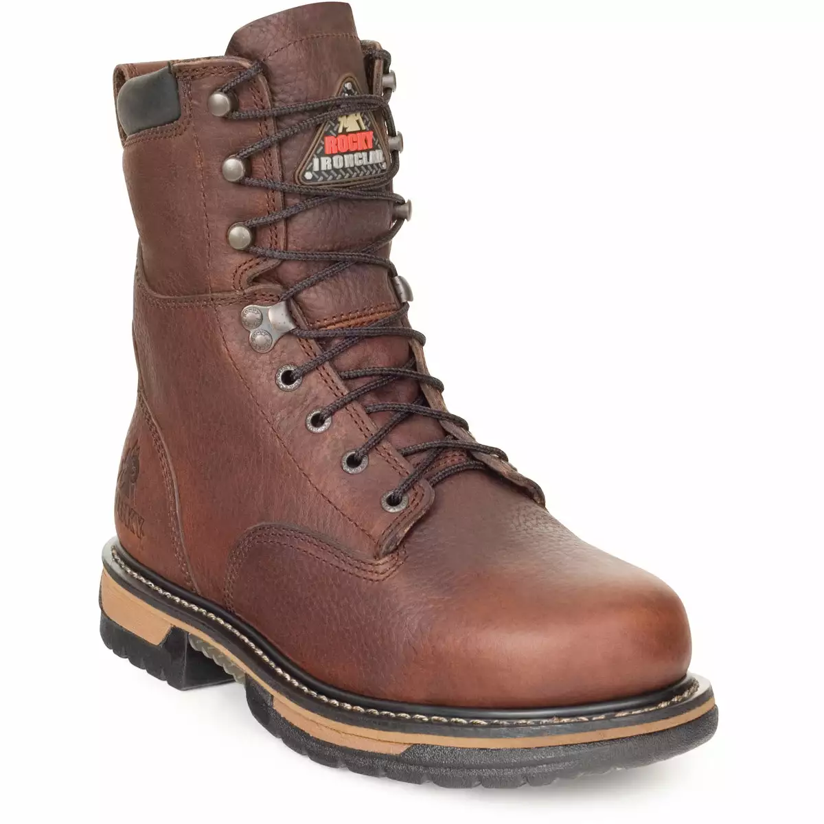 Rocky Boots Rocky Ironclad Mens Brown Leather 8in Steel Toe Waterproof Work Boots