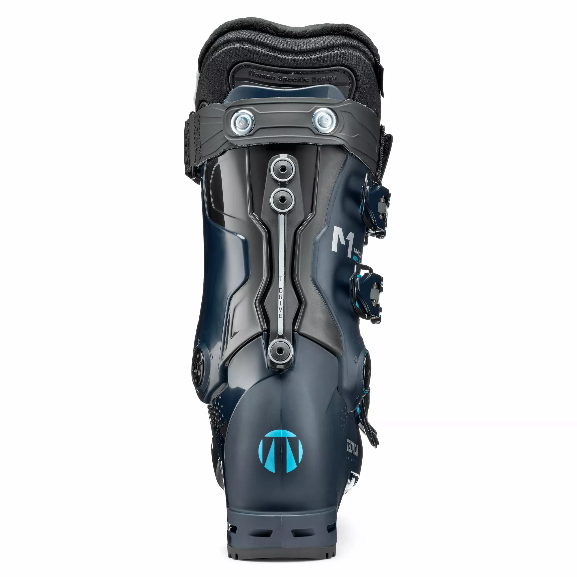 Designed with input from the Women 2 Women program, the 2023 Tecnica Mach 1 MV 95 W Women’s Ski Boot with T-Drive Technology is specifically designed for advanced level female skiers with medium volume feet, who want a softer, more forgiving boot. Fit is priority number one in the MV 95 W and women’s specific Custom Adaptive Shape C.A.S. technology in the liner and cuff is the way we achieve it. Developed with an anatomically shaped and women’s specific shell and liner, the C.A.S. technology provides a great fit right out of the box but also allows a high level of customization if need be. The C.A.S. Cuff Adapt System quickly and easily adjusts volume of the top of the cuff to fit a variety of lower leg shapes. The Asymmetric shell and cuff design in combination with the Womens Natural Stance setup puts you in the perfect balanced position to tap into all the energy and performance of your skis. And with flex rating of 95 this boot gives you the support you need to confidently ski all over the mountain with control and confidence.