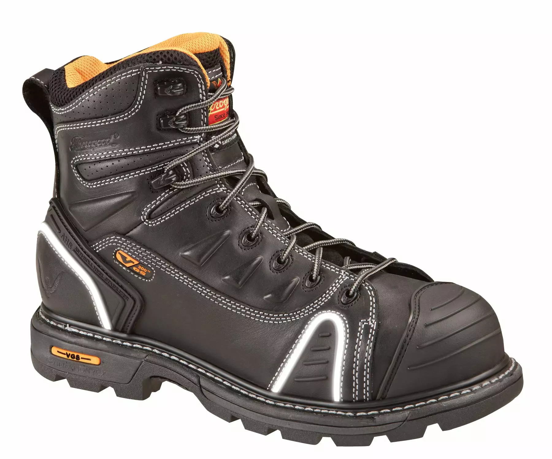 Thorogood Mens Genflex Black Leather Work Boots 6in Lace-to Safety Toe